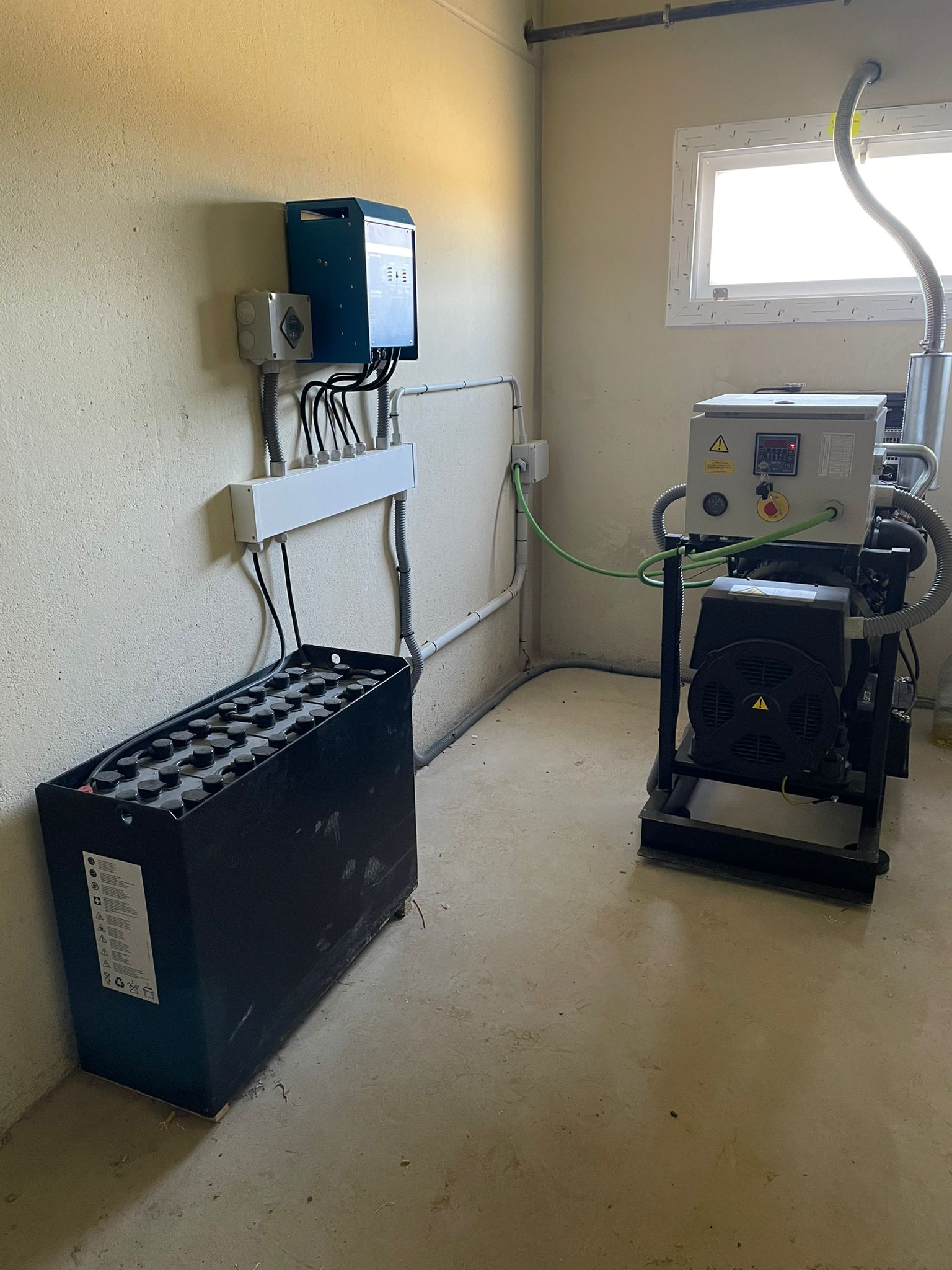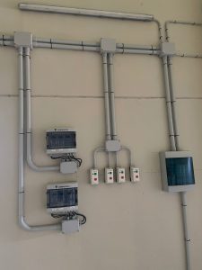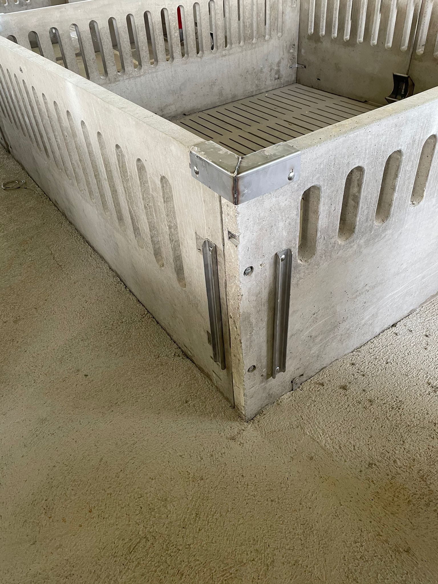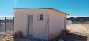 Tabiquería prefabricada de hormigón con puertas de PVC de 1mts y tolvas individuales con bebedero adicional.
