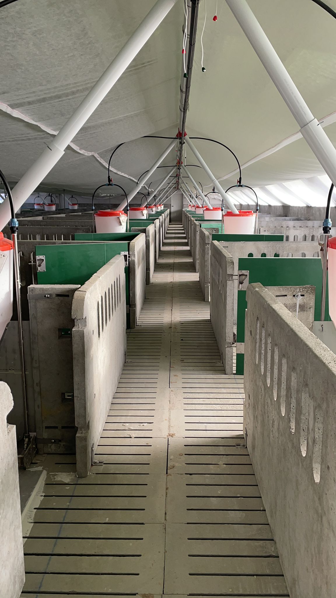Esta granja tiene la peculiaridad de que esta el nivel freático muy alto y la construcción se baso en hacer una solera de toda la granja de 35cm que actúa como granja flotante.